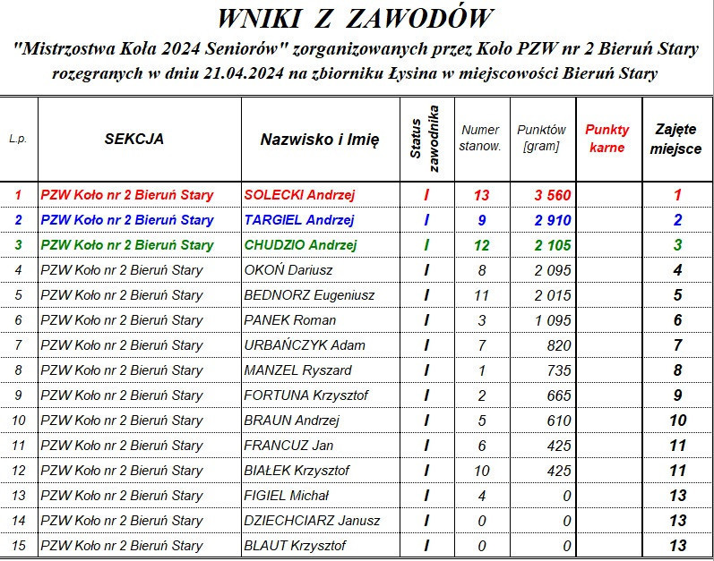 ZAWODY O „PUCHAR ZARZĄDU” tzw. rozpoczęcie sezonu dla wszystkich członków Koła PZW Pieńsk