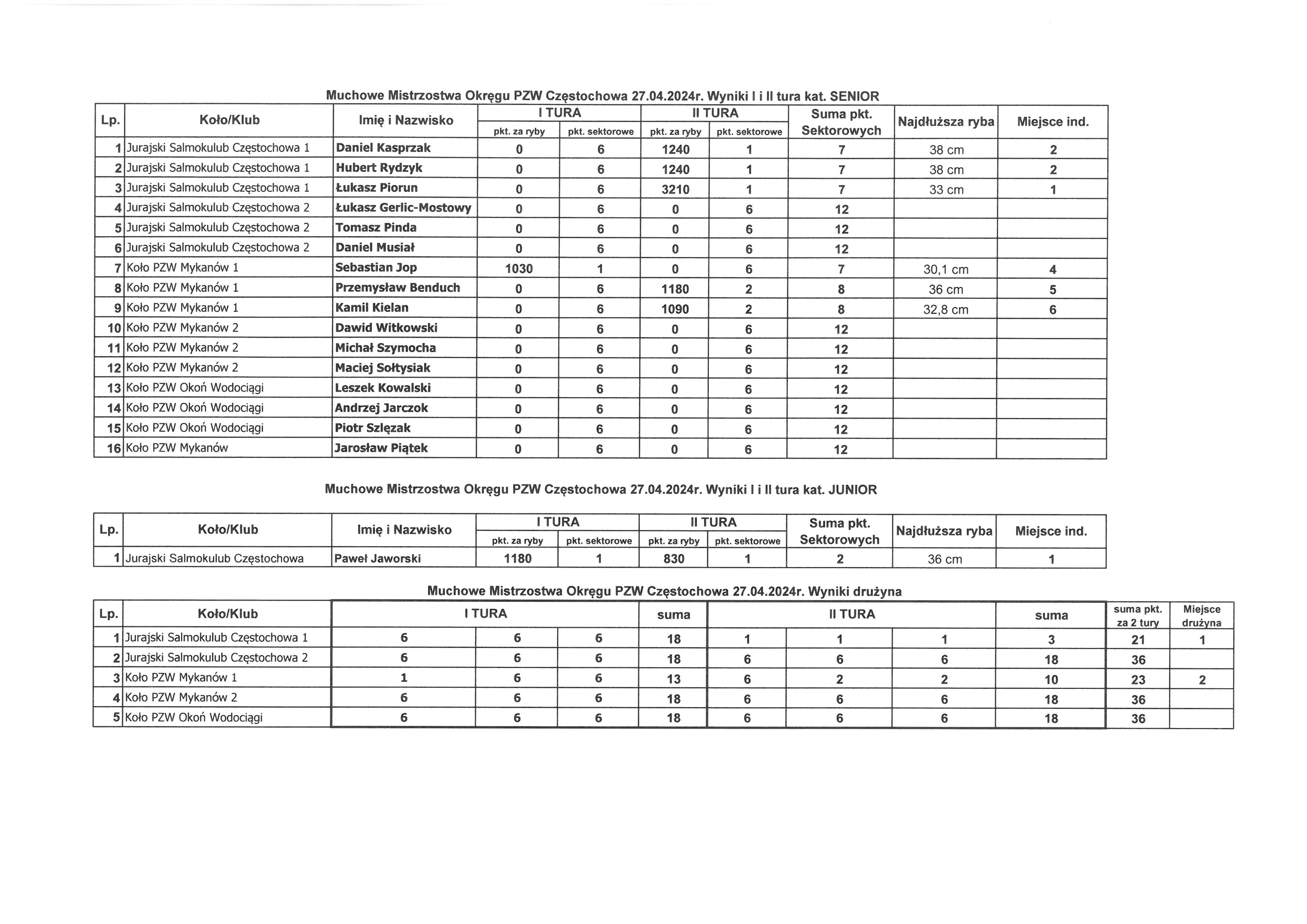 Muchowe Mistrzostwa Okręgu PZW Częstochowa 27.04.2024r. - WYNIKI